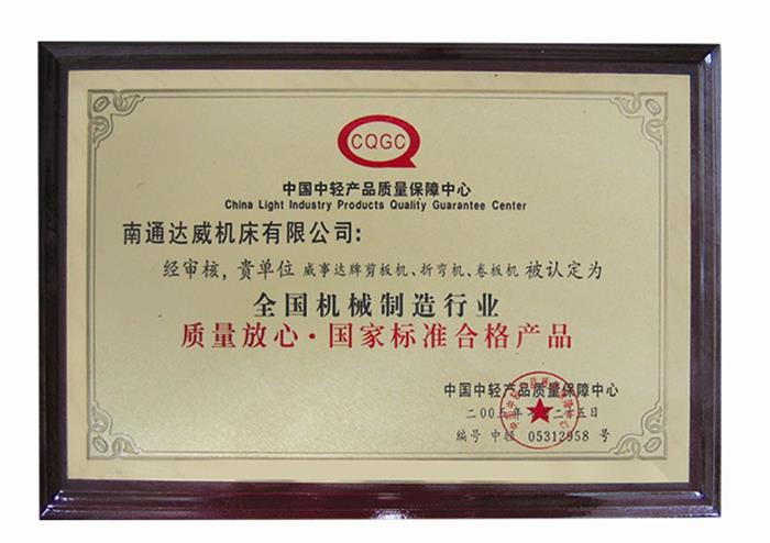 質量放心·國家標準合格產品 江蘇省優質產品