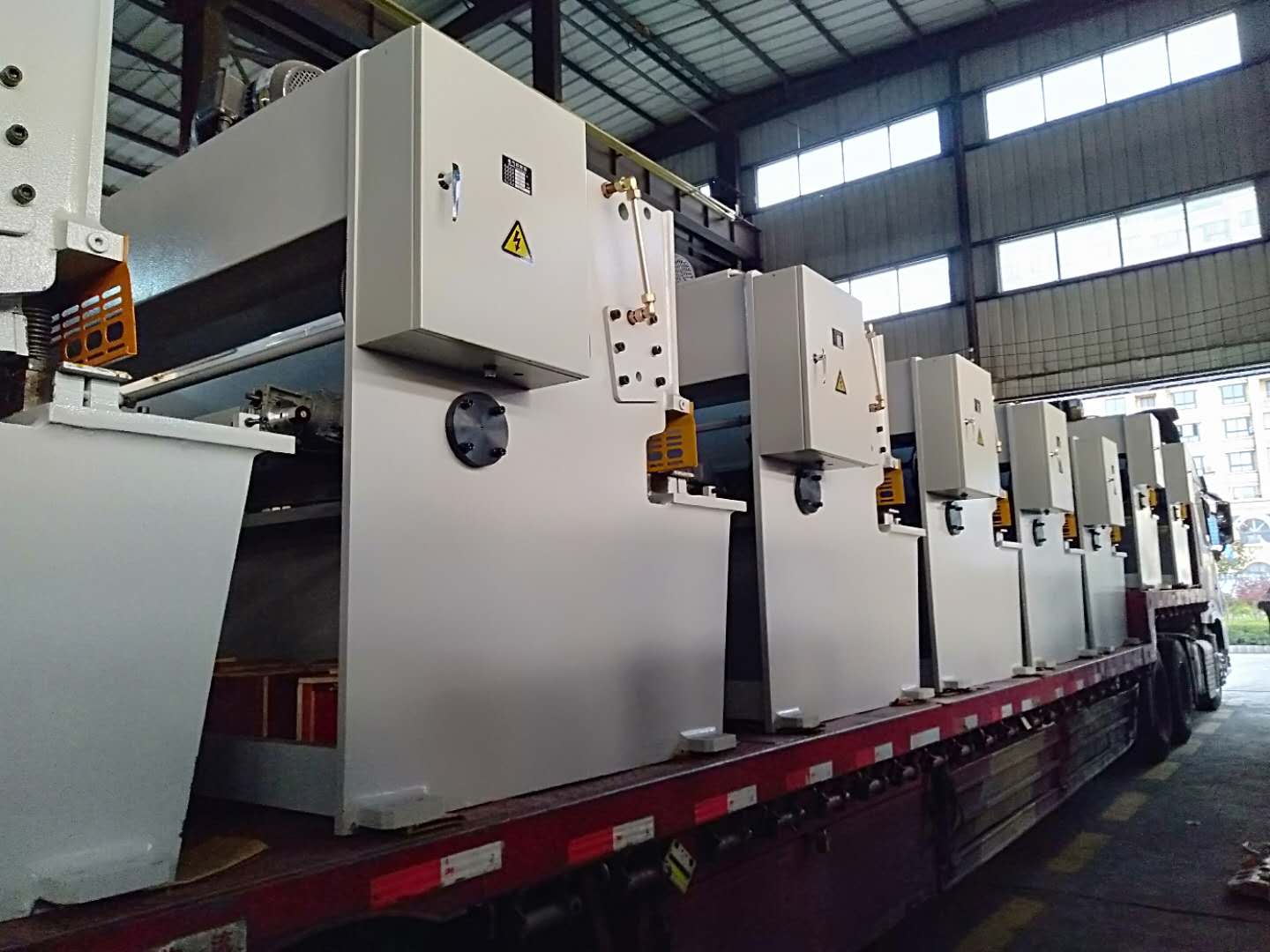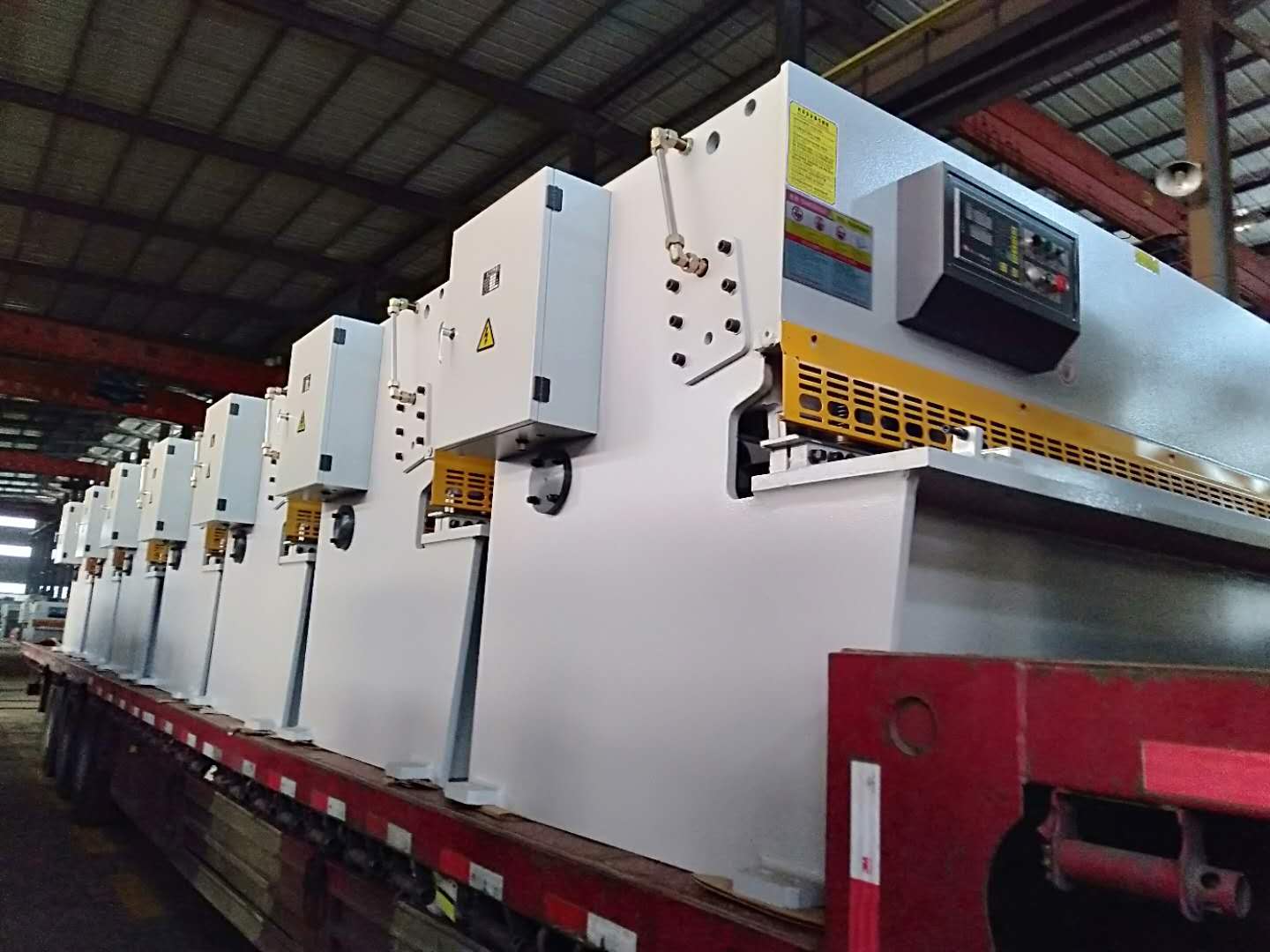整齊的一排液壓擺式剪板機,共計10臺