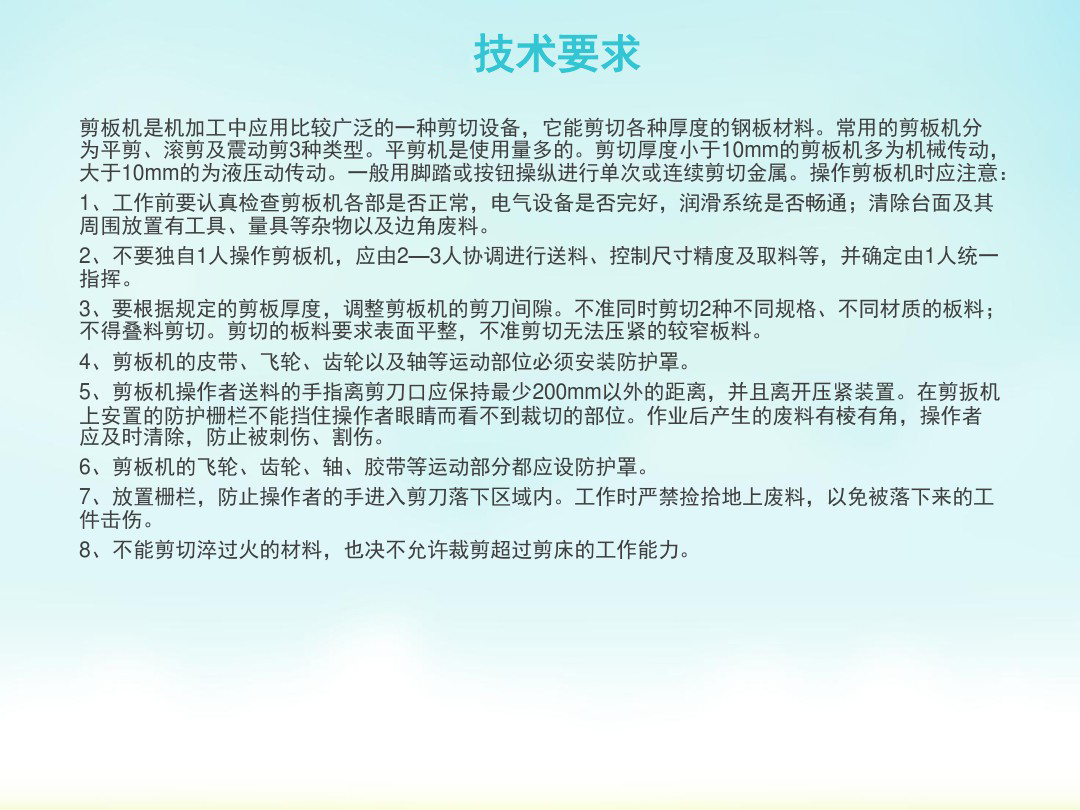 剪板機技術要求